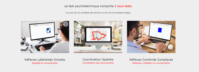 Des examens psychotechniques sont exigés en cas d’annulation ou d’invalidation du permis de conduire, ou en cas de suspension du permis de conduire pour une durée égale ou supérieure à 6 mois. L’examen a pour but de déterminer les capacités psychomotrices à la maîtrise de la conduite. Durant cet examen, le candidat passe des tests psychotechniques qui sont destinés à évaluer :